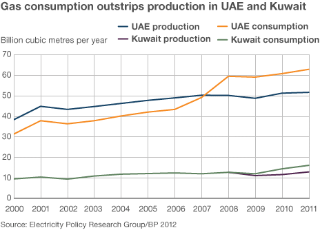 Потребление газа превосходит его производство в ОАЭ и Кувейте