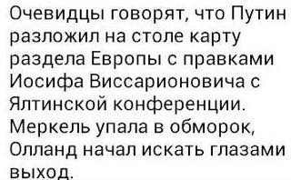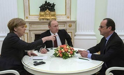 "Олланд и Меркель беседуют с Путиным с глазу на глаз. Даже без переводчиков."и еще...