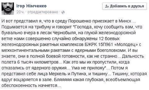 Руссо Балт Несогласие вызвало отсутствие пунктов "Добить укропов в Дебальцево", "Вы3.14зднуть укропов за пределы Луганской и Донецкой областей", "Обстрелять центр Киева Точкой-У"...