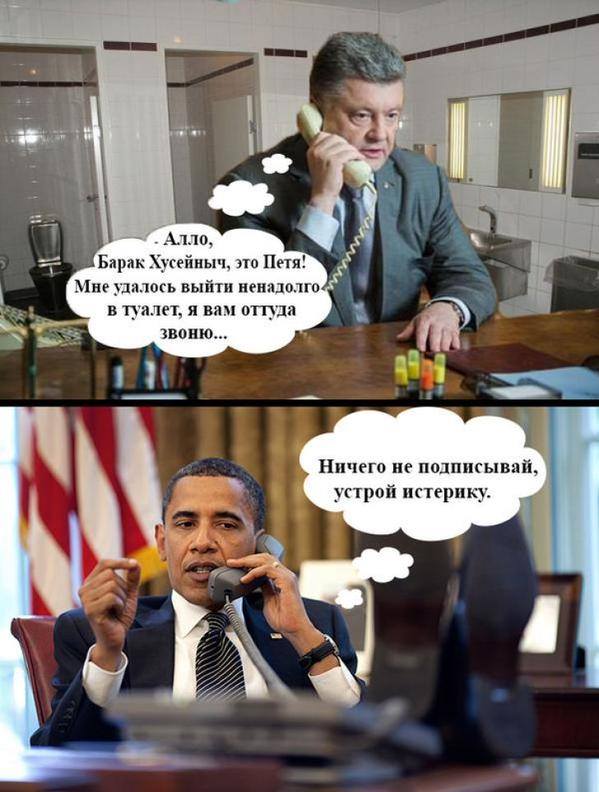 Пей, Порошенко, пей! Кинул тебя Ромпей, кинул тебя Совбез, кинул тебя ЕС, Нуланд тебе лгала, фрау не подала, кинул тебя Олланд, вставив до самых гланд, кинул тебя Маккейн. Даром что ты, лакей, вылизал столько срак - кинул тебя Барак. Самых тупых тупей - пей, Порошенко, пей!