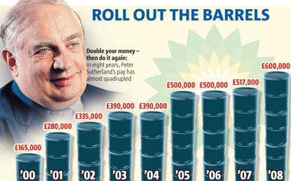 В 2010 году у м-ра Сазерленда завершился 13-летний срок пребывания на посту председателя «Бритиш Петролеум», крупнейшей европейской нефтяной компании. В прошлом генеральный прокурор Ирландии, он ныне является президентом государственного доверительного фонда по образованию и научным исследованиям, этакого британского «мозгового центра», усилия которого более уместно было бы именовать «корпоративистской индоктринацией», а не заслуживающим доверия «образованием». Он также занимает посты председателя Ирландского трастового фонда Великобритании, члена консультативного совета по бизнесу в Новой Европе – европейского «мозгового центра» сторонников Нового мирового порядка, находящегося в Британии.