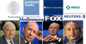 Аналогично тому, что мы обнаружили в процессе исследований сфабрикованной страшилки о свином гриппе H1N1-H5N1 и мошеннической кампании по вакцинации, злодеями оказались заправилы «PharmaMedia», включая «тяжеловесов-вышибал» с Уолл-стрит – сплошь партнёров PFNYC и инвестбанкиров союза Ротшильда (см. сайт: «Фармашлюхи» - PHARMAWHORES: The SHOWTIME Sting of Penn & Teller).