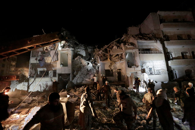 Поиск выживших после российских воздушных ударов по удерживаемому повстанцами сирийскому городу Идлиб в мае. Фото - Халил Ашави/Reuters