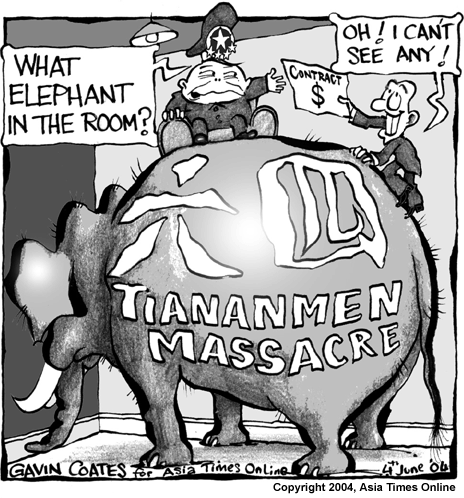 Надпись на слоне: Таньаньменьская бойня