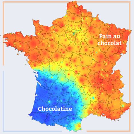 Опрос сайтом более чем 110000 французов установил, что почти 60% из них скажут pain au chocolat, а 40% - chocolatine.