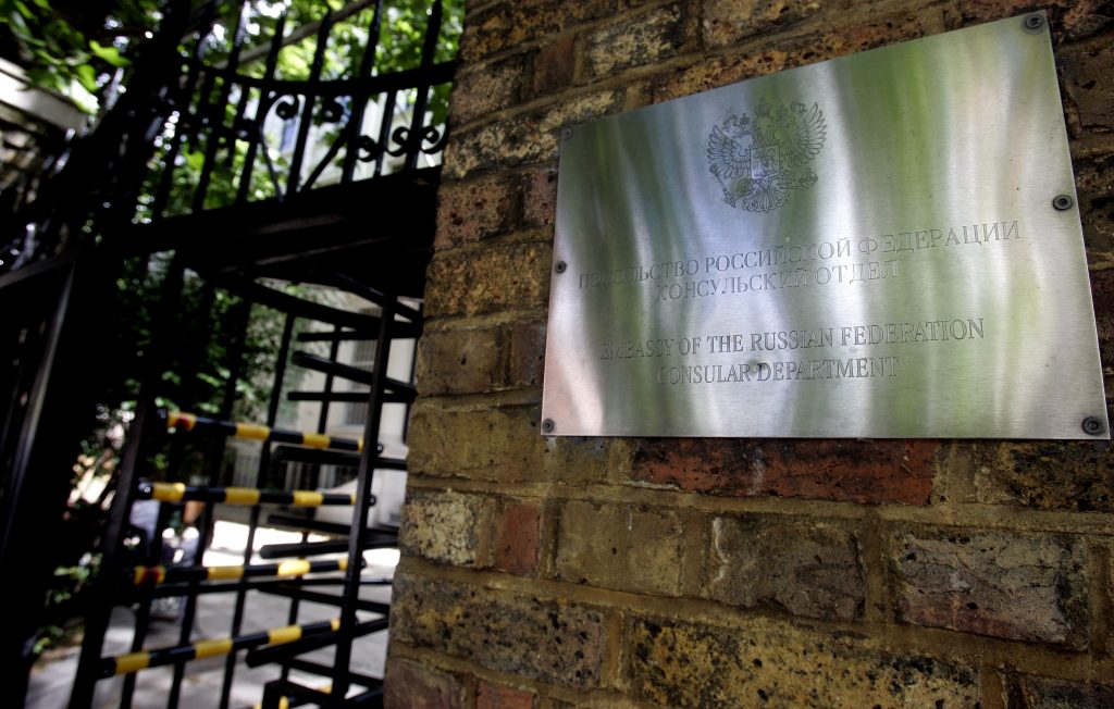 Вход в посольство России в Лондоне. (Kirsty Wigglesworth/AP)