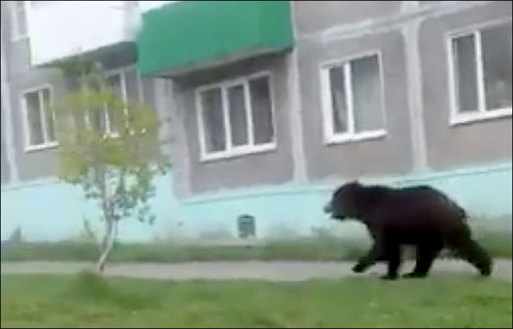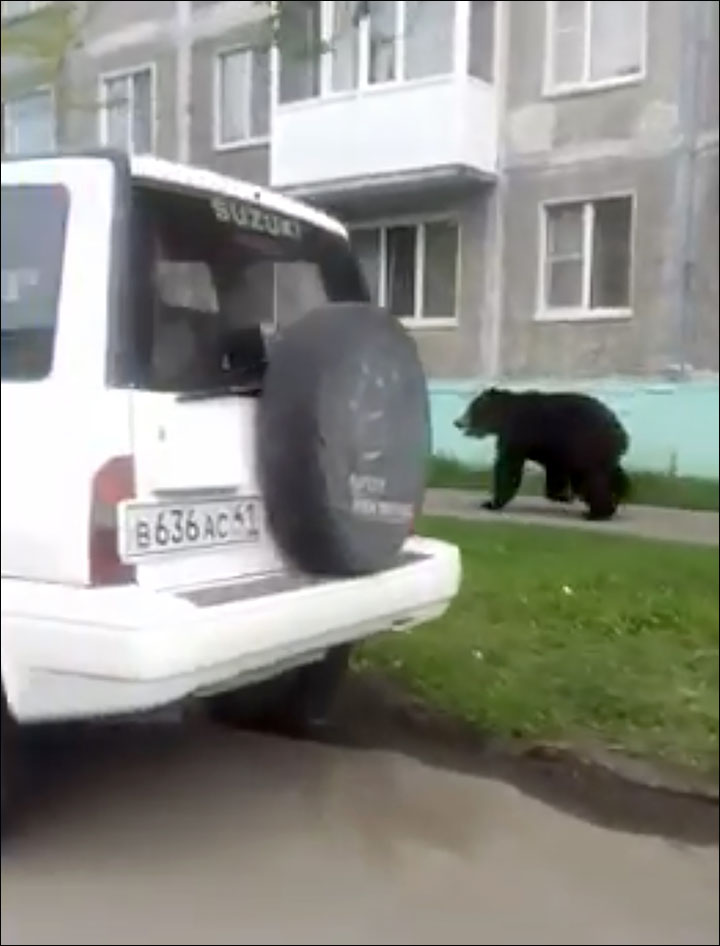 Жители Вилючинска сняли на видео медведя прогуливавшегося по улицам закрытого для иностранцев города-порта.