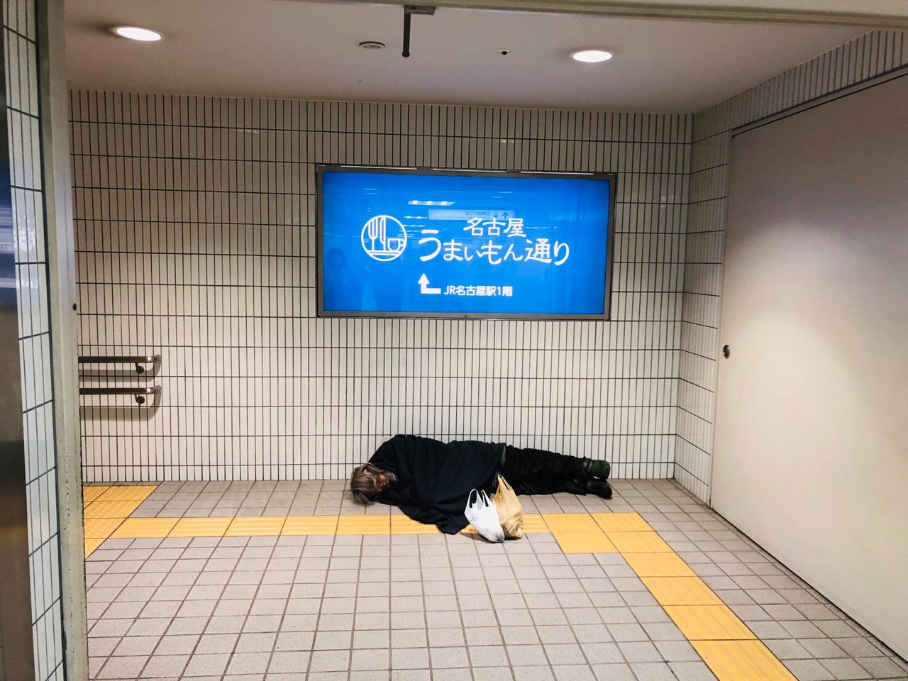 За день до этого я заметил бездомного старика, который спал прямо под большим щитом, рекламирующим роскошные кафе на шикарном железнодорожном вокзале Нагоя.