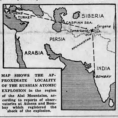 Автор «Sunday Express» говорит: «Британские наблюдатели, в том числе эксперты Королевских ВВС, уже отправлены на север для документирования возмущений [в атмосфере] связанных с атомным взрывом.