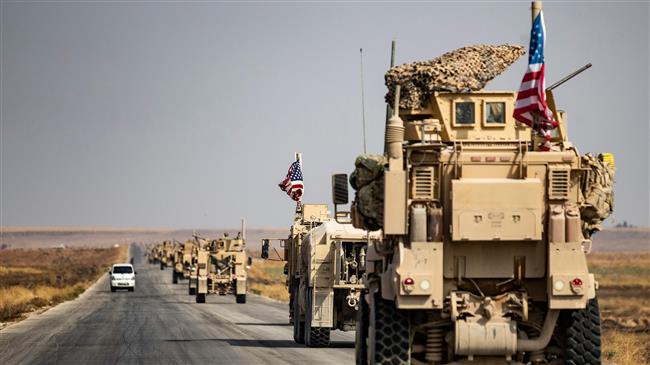 На этой фотографии показана американская военная техника, идущая по дороге в сирийском городе Таль-Тамр 20 октября 2019 г. после ухода с их базы. (через AFP)