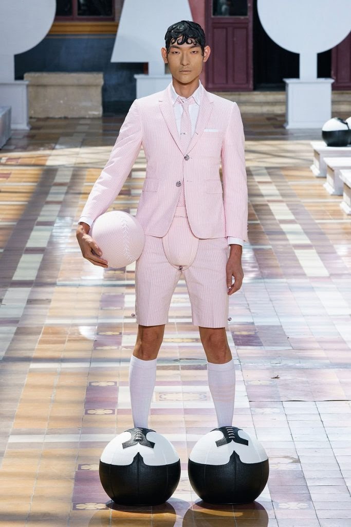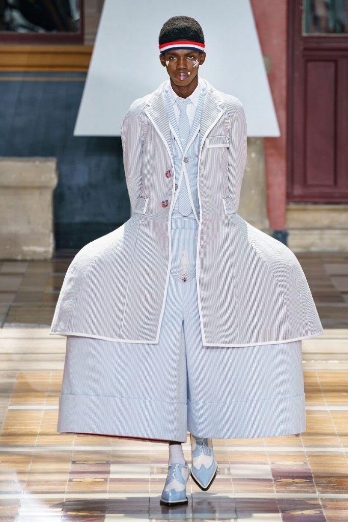 Парижская Неделя Высокой Моды для мужчин: балетная пачка, футбольные шлемы и юбки-штаны из полосатых лент от Тома Брауна