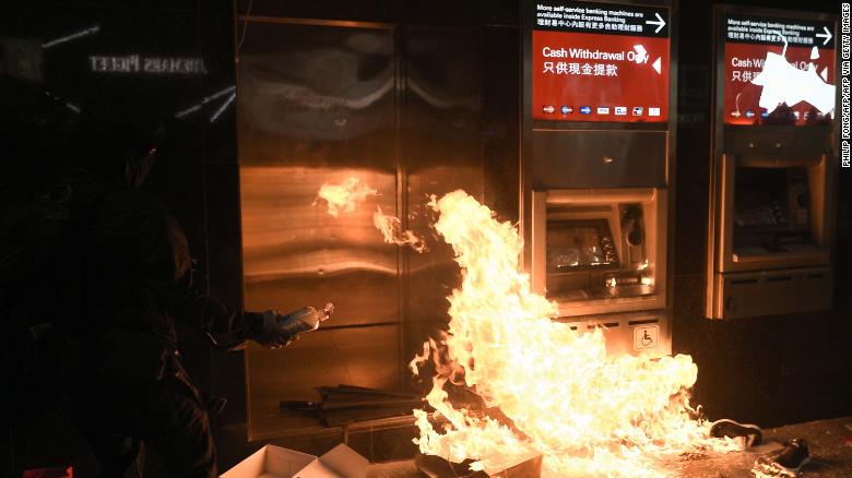 Протестующие в этой бывшей британской колонии атаковали некоторые отделения банка HSBC на этой неделе и размалевали красной краской пару бронзовых львов у штаб-квартиры банка в Гонконге. HSBC, крупнейший банк в городе, был обвинен в сотрудничестве с китайскими властями, чтобы лишить протестующих финансирования.