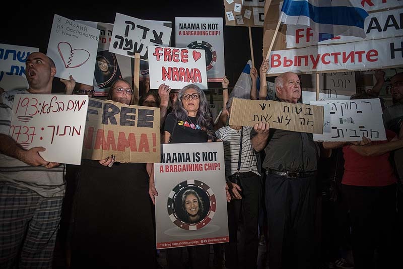 Израильские демонстранты призывают освободить Нааму Иссахар, 19 октября 2019 года.