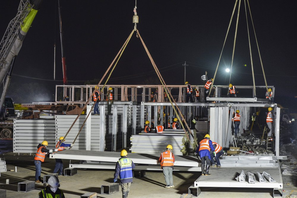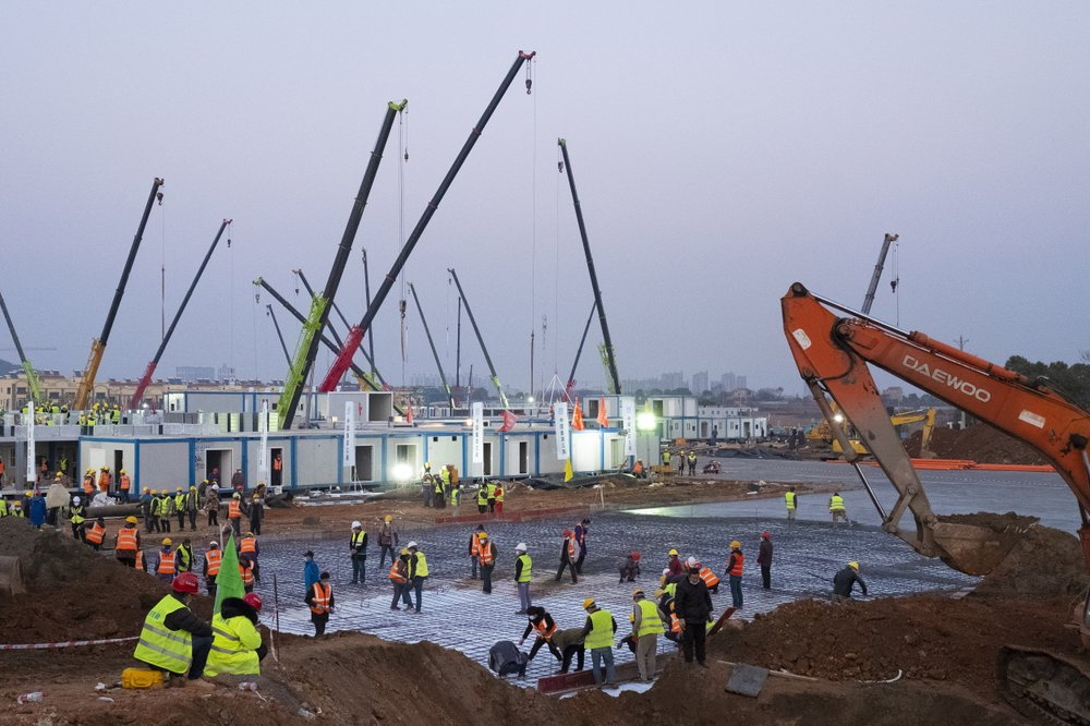 Город спешит построить больницу на 1000 коек для больных вирусом. Она должна открыться в понедельник, через 10 дней после начала строительства. Вскоре после этого откроется вторая больница на 1500 коек.