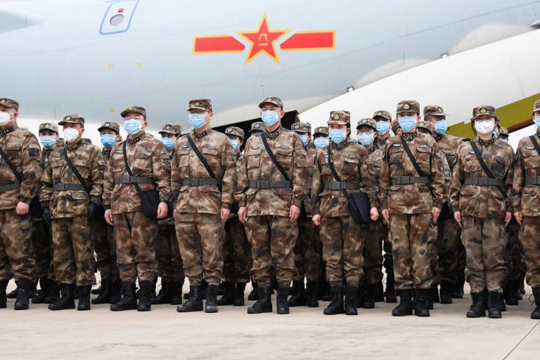 Военные медики Народно-освободительной армии Китая прибыли в международный аэропорт Тяньхэ для борьбы с эпидемией коронавируса, Ухань, 2 февраля 2020 г.