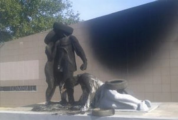 На памятнике вандалы нацарапали: «Смерть оккупантам», «Смерть Алёше», «Смерть коммунизму».