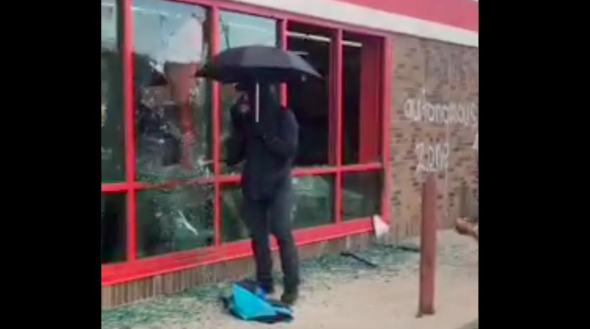В сети ходит видео белого, небрежно разбивающего молотком окна магазина в Миннеаполисе во время протестов из-за убийства Джорджа Флойда полицией. В респираторе, с большим зонтом и в черной одежде в полный рост, мужчина явно пытается скрыть свою личность.