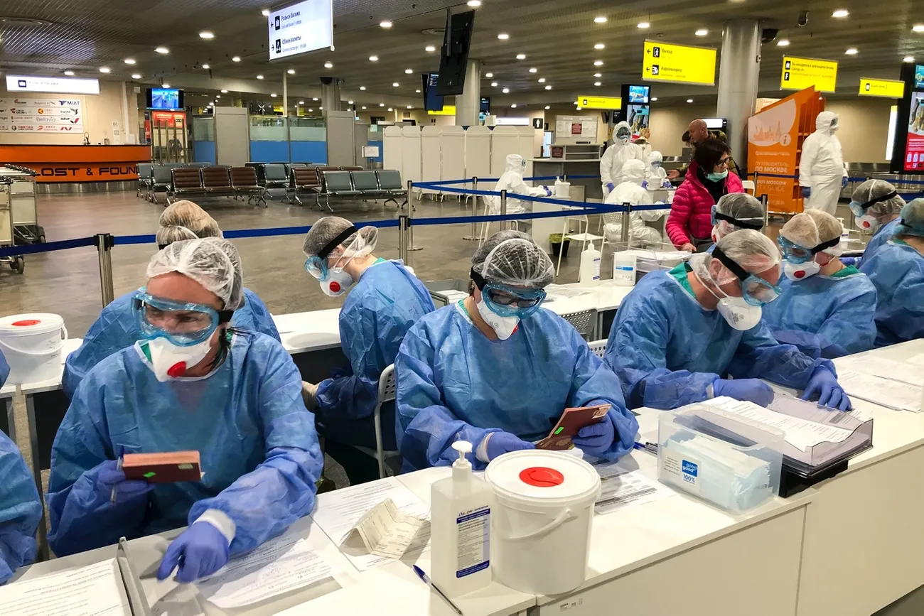 Проверка документов в аэропорту Шереметьево. Москва, 8 марта 2020 года