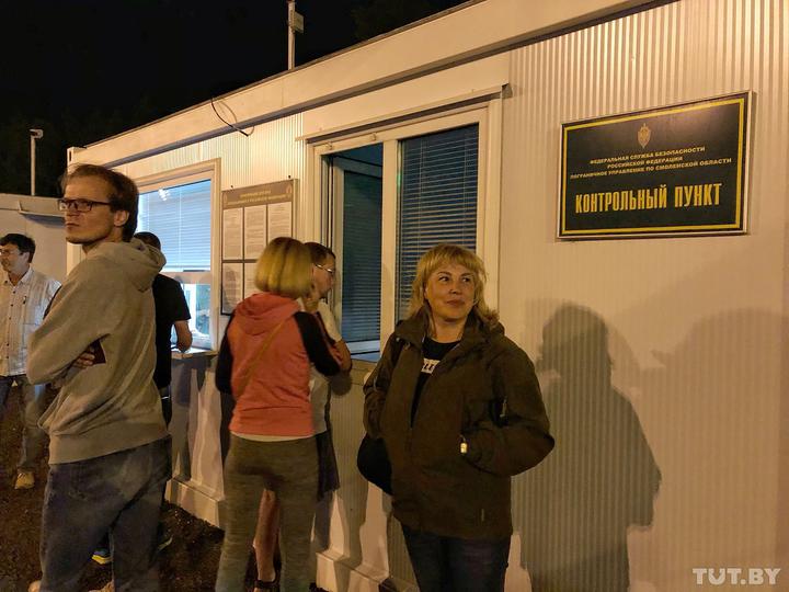 У будочек, где водителям нужно предъявлять паспорт, очереди, в каждой человек по 10−15. Здесь были и россияне, и белорусы. Кстати, оформляли людей уже три пограничника (утром был только один): вручную вносили данные из паспортов в ноутбук, к которому был подключен USB-модем, уточняли, куда и с какой целью едет человек, просили сообщить номер мобильного телефона.