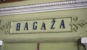 Надпись над входом в пункт выдачи багажа в Спилве.