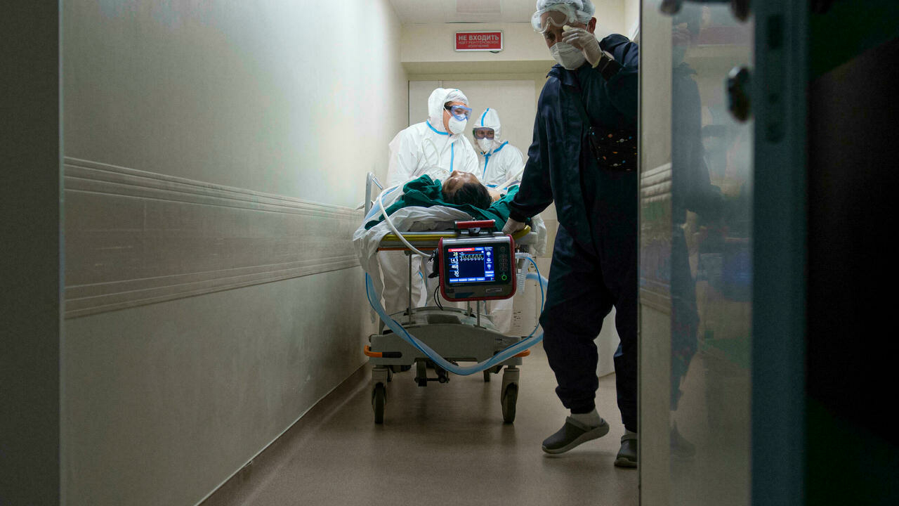 Медики в специальных защитных костюмах перевозят пациента с коронавирусом в Городскую больницу № 52 для больных ковидом в Москве AP - Denis Kaminev