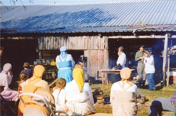 В каждой комнате иконостас, украшенный вышитыми занавесками. Всё свободное время женщины вышивают, частенько на заказ для единоверцев в Канаде и на Аляске. Неплохой побочный заработок - тамошние уже не хотят сами этим заниматься, согласны покупать, раз богаче живут. У них и мы сами научились вышивать. Несколько раз гостили мы в этой деревне на праздники, в будние дни там с гостями возиться некогда - все заняты с рассвета до темноты. Детей много и все тоже при деле в меру возможностей, и никогда мы не слышали, чтобы детям приходилось что-либо повторять дважды.