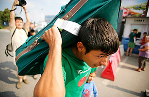 Румынские цыгане тащат свой багаж вскоре после прибытия из Франции в международный аэропорт Бухареста, 26 августа 2010 г.