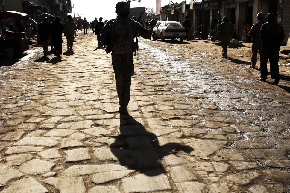 Американский военнослужащий из восстановительной команды идёт по улице в Оргуне, 20 января.