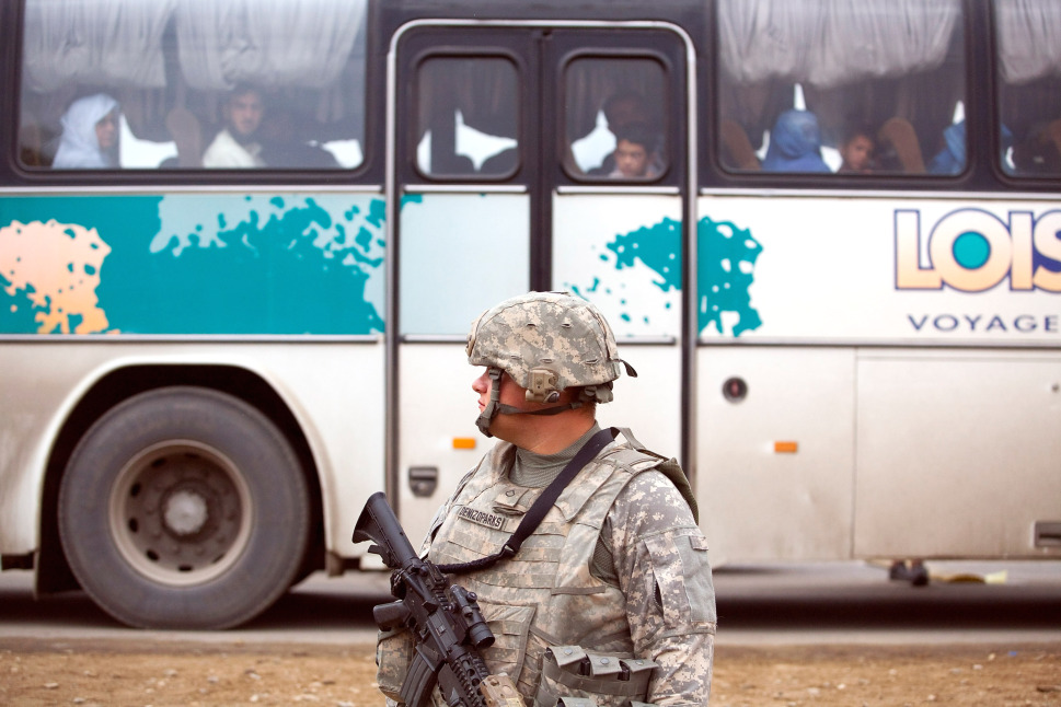 Американский морской пехотинец проверяет машины в поисках пропавшего американского моряка, КПП на дороге Кабул – Баграм. 28 июля.