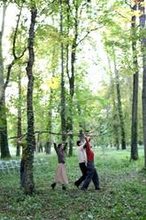 Увы, чтобы экспериментировать до конца с властью перемещения, которую природа применяет к человеку, танцоры сковывают себя в любом хореографическом движении. К сожалению, есть некая холодность на площадке представления, когда действия следуют друг за другом, конечно, они хорошо продуманы, но лишены эмоции. Вот здесь кто-нибудь кладёт опавшие листья на крону кустарника; вот там другой обнимает ствол, затем группа размахивает палкой перед мощным каштаном, и в конце артисты тянут к земле громкоговорители, которые источают на партер колючих кустарников текст, описывающий чудесные цветы… Во всех этих жестах-идеях есть нечто сухое, схематичное. Но это представление, соответствующее духу фестиваля, вызывает у зрителей неожиданную реакцию. Вдруг, сконцентрировавшись на пространстве, обращаешь несказанное внимание на этот уголок зелени, где каждая ветка, каждый листочек и каждый лучик солнца становится участником спектакля.