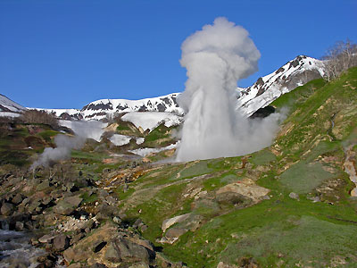 Кто знает, может, особенностями здешней атмосферы и объясняется неимоверное количество легенд, которое люди сочинили о Долине гейзеров за ее недолгую публичную жизнь. Лет 15 назад некоторые специалисты на полном серьезе утверждали, что периодически сюда забредает снежный человек. Правда, поймать его они не сумели. Другая история звучит совсем уж фантастически. Два инспектора плыли на лодке по Кроноцкому озеру, расположенному неподалеку от Долины. Вдруг в воде образовалась глубокая воронка, из нее вынырнул странный объект и с огромной скоростью умчался куда-то в небеса. Инспектора испугались, сообщили о происшествии в администрацию заповедника. Но над ними лишь посмеялись и приказали вернуться в город.