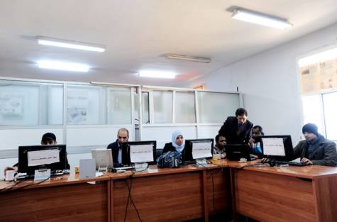Одна из гостиниц Бенгази предоставляет бесплатный доступ к интернету для всех журналистов, независимо от того, живут ли они в этой гостинице. Там есть комната для собраний, где журналисты собираются и печатают, стуча по клавиатуре.
