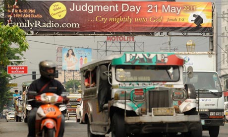 Баннер предупреждающий о наступлении Судного дня на улице Манилы, Филиппины. Photograph: Noel Celis/AFP/Getty Images