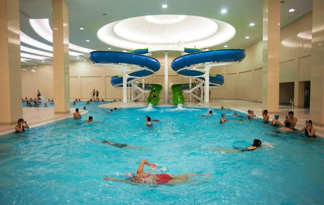 22 Студенты плавают в бассейне, университет им. Ким Ир Сена в Пхеньяне, Северная Корея, 13 апреля 2011 года. (AP Photo / David Guttenfelder) #