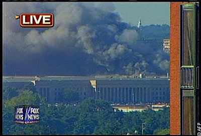 Обе башни Всемирного торгового центра рухнули после того, как в них врезались смолёты. Ещё один самолёт также врезался в Пентагон в районе Вашингтона, вызвав серьёзные повреждения. Поступают сообщения о том, что четвёртый пассажирский самолёт был сбит американскими военными самолётами рядом с Кэмп-Дэвидом, президентской загородной резиденцией в Мэриленде. Пятый самолёт разбился в западной Пенсильвании. Рядом со зданием Государственного Департамента взорвалась бомба, согласно источникам в Госдепартаменте.