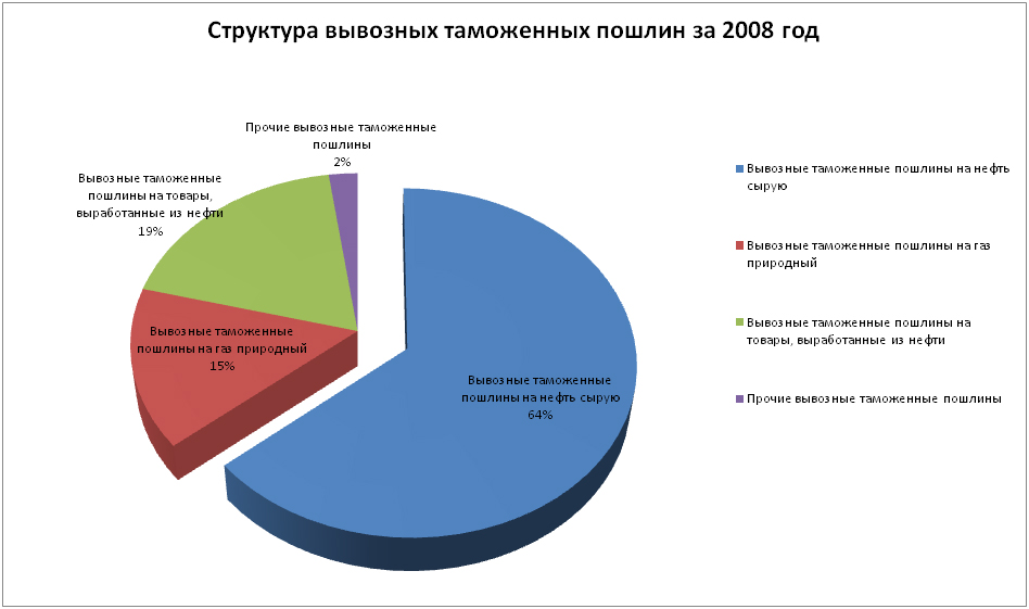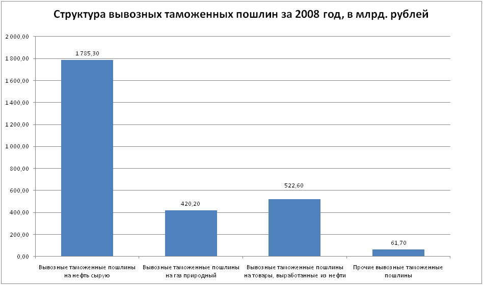Как вы понимаете, нас конкретно сейчас интересуют вывозные таможенные пошлины, которые составили в 2008 году 2860 млрд.рублей в абсолютном значении. Давайте разбирать ещё более подробнее: