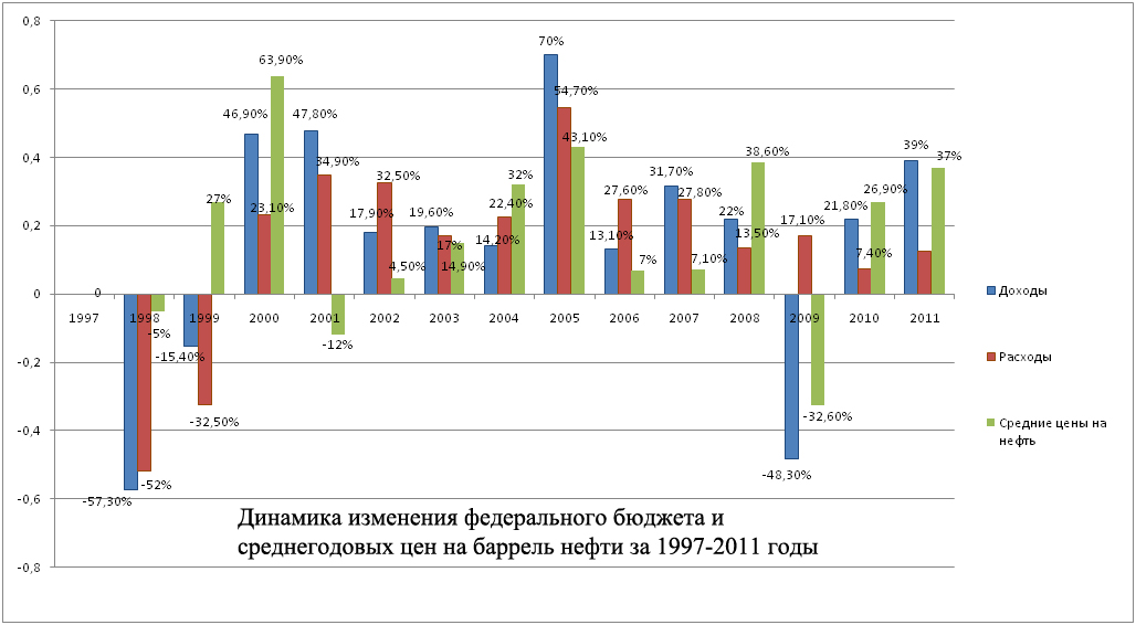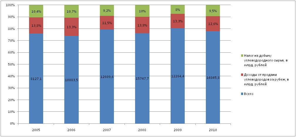 По этим двум графикам прекрасно видно резкое увеличение, в особенности с 2005 года, доли нефтегазовых доходов в структуре федерального бюджета. В первую очередь это объясняется ранее упомянутыми налоговыми реформами вместе с увеличением пошлин на экспорт сырой нефти. Перенастройка механизма экспортных пошлин и введение НДПИ позволили увеличить долю нефтегазовой ренты, получаемой госбюджетом, с менее чем 40 % в 2000 году до 84 % в 2005 году.