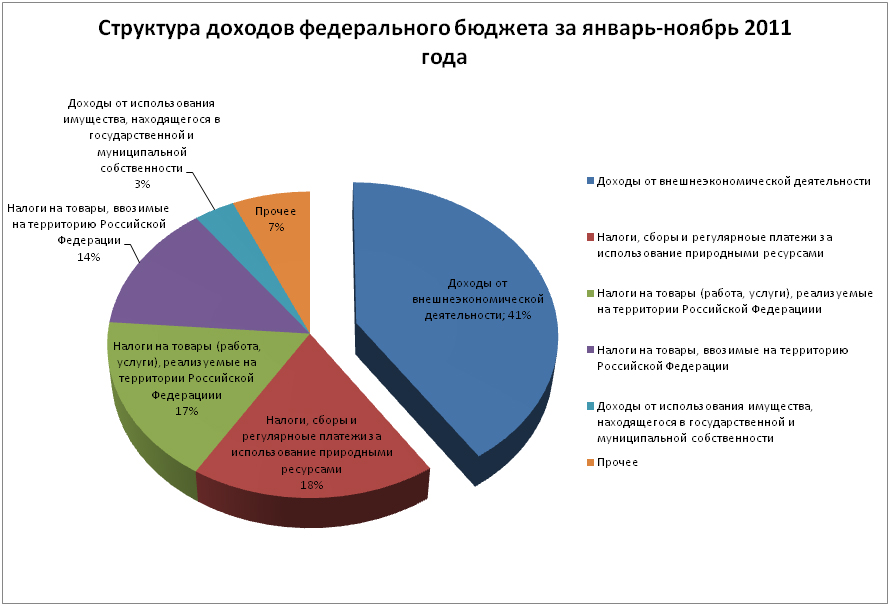 А что же насчёт структуры доходов, которая нас собственно интересует? На данный момент есть только предварительные данные за январь-ноябрь 2011 года, по которым какую-либо чёткую картину выстроить пока невозможно. Но «краем глаза» взглянуть всегда можно (по текущим данным Министерства Финансов на 24 февраля 2012 года):
