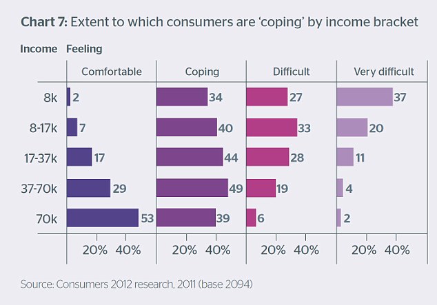 Согласно опросу Which?, количество тех, кто «справляется» при годовом доходе домохозяйства в £70,000 лишь немногим больше тех, кто зарабатывает в год £8,000