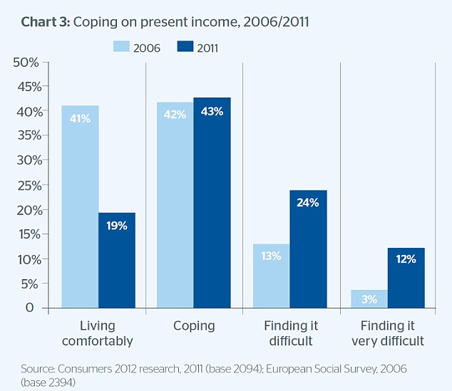 Проведенный потребительской группой Which? опрос показал, что только 43 процента потребителей уверены, что смогут прожить на свои доходы, а 36 процентов признались, что им это сложно, число таких людей с 2006 года увеличилось вдвое.