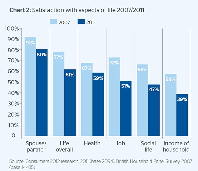 Организация Which? выяснила, что в 2011 году количество людей, довольных своей жизнью, значительно сократилось по сравнению с 2007 годом.