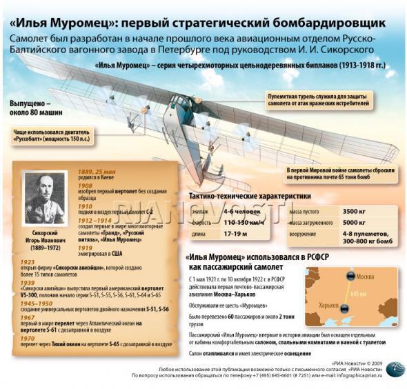 5. И.И. Сикорский — великий авиаконструктор, создал первый в мире вертолет, первый в мире бомбардировщик