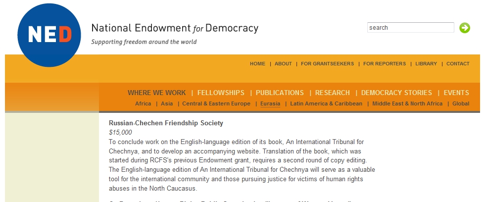 Изображение: снимок экрана с веб-сайта Национального фонда за демократию о финансировании США для НПО "ГОЛОС". "Голос", как утверждают, осуществлял поиски "нарушений на выборах" на недавних российских выборах. "Голос" и другие поддерживаемые США НПО и оппозиционные партии пытаются теперь спровоцировать "арабскую весну" в России.