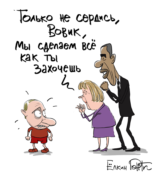 Обама(теряя терпение): - Володенька, мы же вас зубками загрызём!