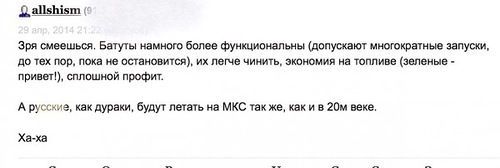 «Американская сторона просит увеличить нас общее количество двигателей на восемь единиц. Они хотят, чтобы мы увеличивали ежегодную поставку на некоторое количество, в частности, в 2015 году планируется, что мы им поставим вместо пять двигателей восемь», - сказал Солнцев, слова которого приводит ИТАР-ТАСС. http://vz.ru/news/20.../15/686869.html
