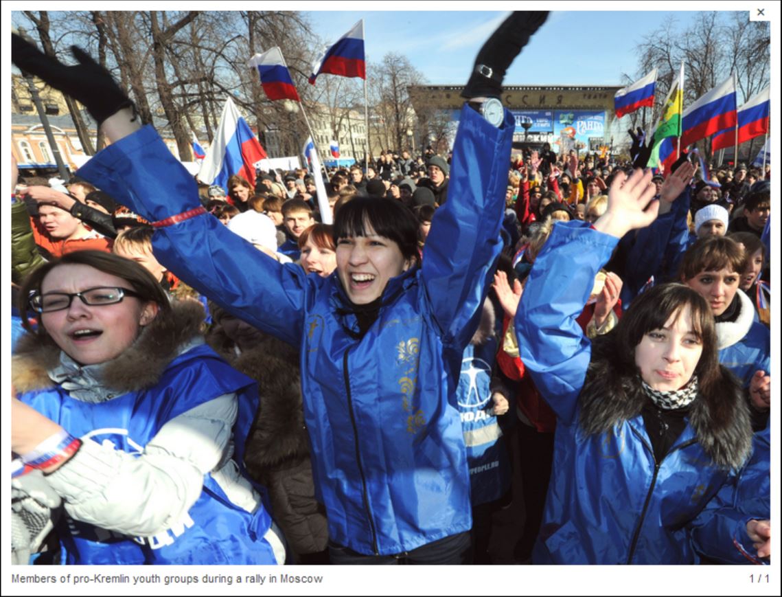 «Шаги г-на Путина по аннексии Крыма и поддержке пророссийского движения на Украине, кажется, вошли в резонанс с молодым поколением, которое не помнит Советского Союза, но тоскует о его мощи».