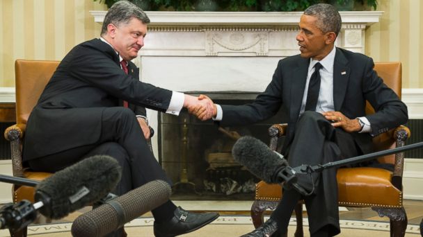 “Народ Соединенных Штатов стоит воедино с народом Украины” - объявил президент Обама после встречи с Порошенко в Овальном кабинете.