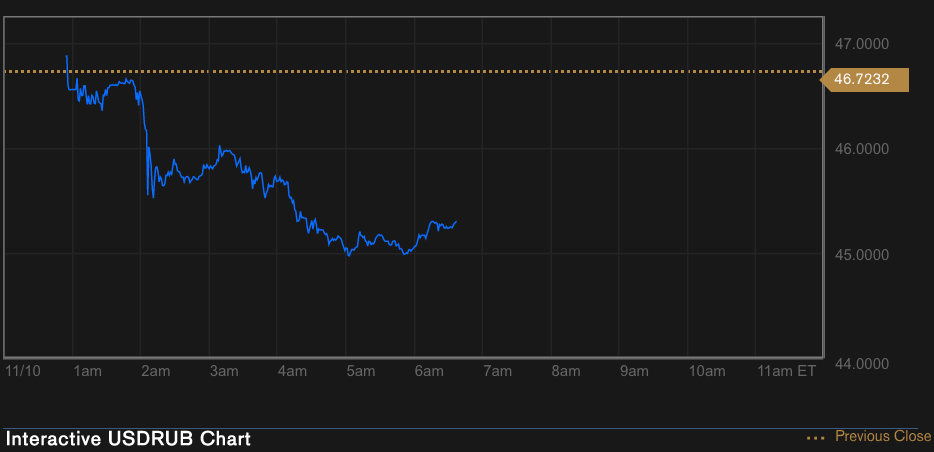 Но курс рубля сегодня повысился по отношению к доллару. Американская валюта потеряла около 3% по отношению к рублю после того, как центральный банк объявил, что он прекращает защищать валюту от обвала.
