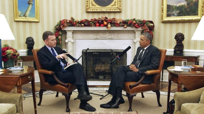 Ведущий программы "Morning Edition" интервьюирует президента Обаму в Овальном кабинете.