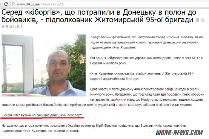 Однако накануне в украинских СМИ появилась информация о том, что среди пленных киборгов оказался подполковник Олег Кузьминых.